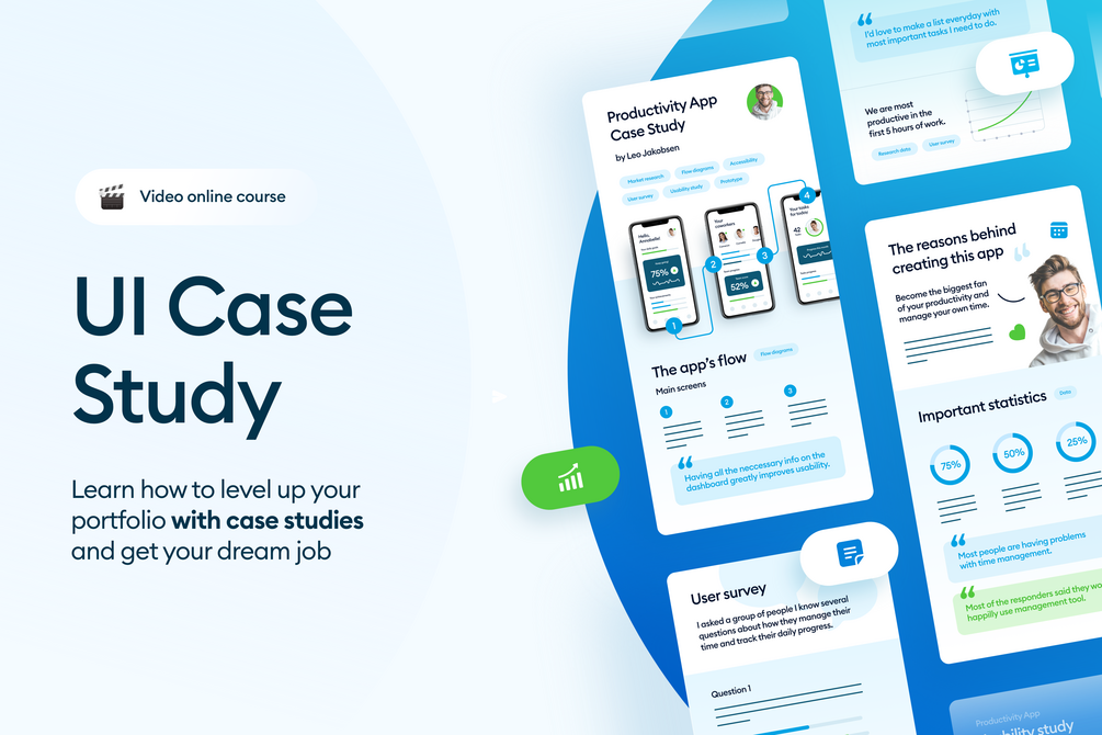 And because people "buy" with their eyes (including recruiters) I will teach you how to write a case study (including some basic research you can do) for your beautiful UI shots.